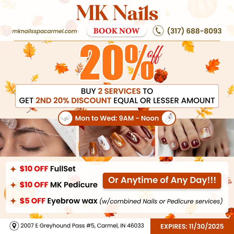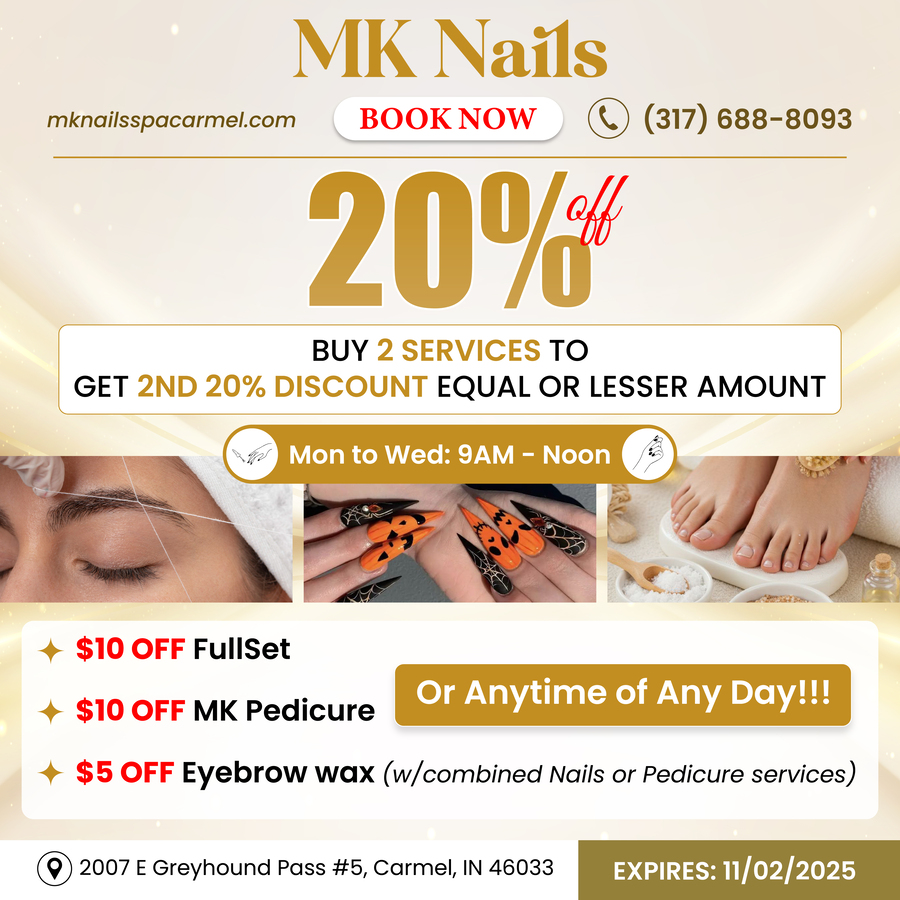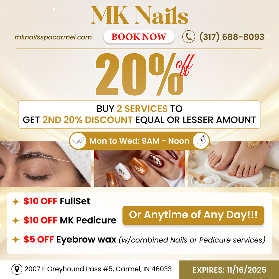Welcome to MK Nails. Located at a beautiful place in Carmel, IN 46033, MK Nails offers the ultimate in pampering and restoring your beauty with our whole-hearted, careful & professional staff. Comprehending customer is not an easy task. It’s even harder when it comes to nail art & caring services.
