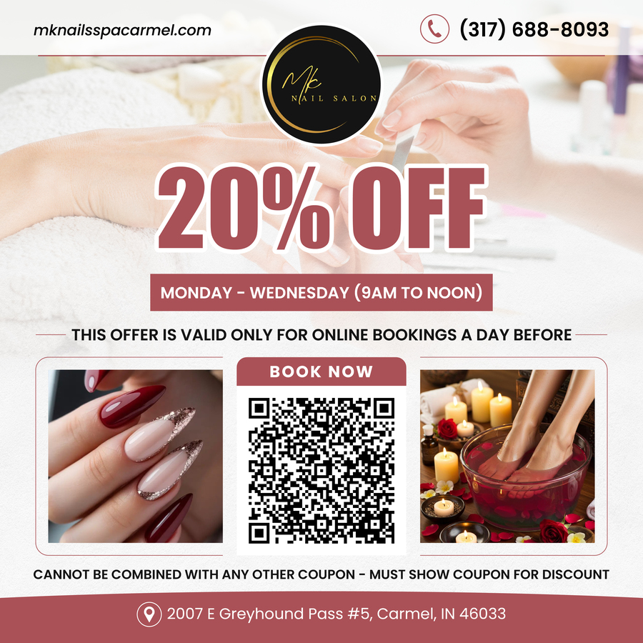 Welcome to MK Nails. Located at a beautiful place in Carmel, IN 46033, MK Nails offers the ultimate in pampering and restoring your beauty with our whole-hearted, careful & professional staff. Comprehending customer is not an easy task. It’s even harder when it comes to nail art & caring services.